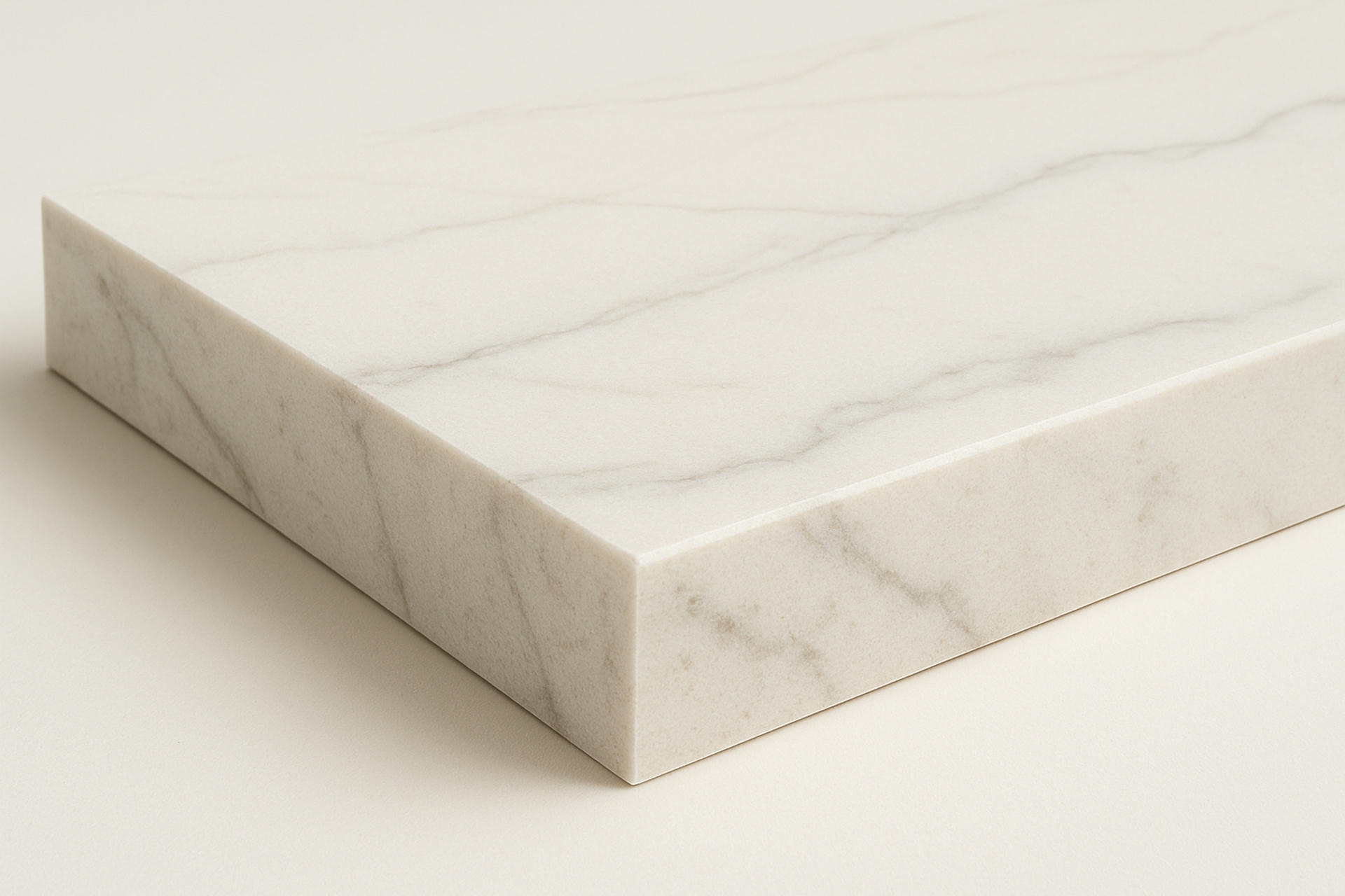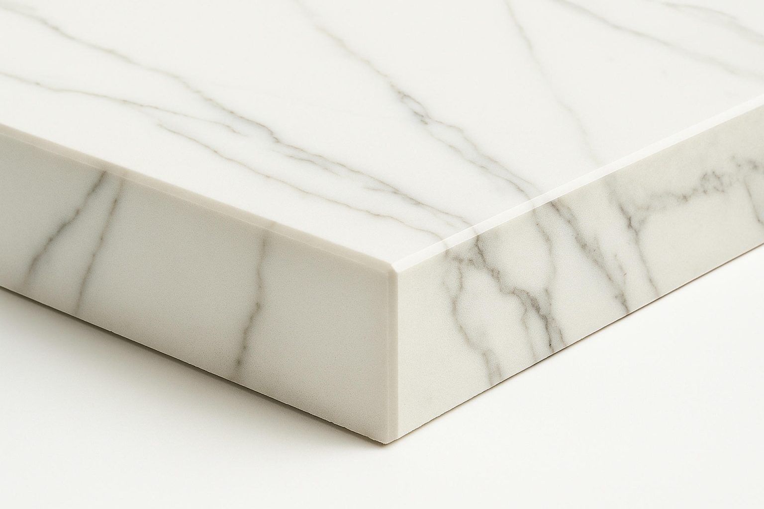 透心大板紋理貫穿整體,切面仍延續自然紋路,展現宛如天然岩石的真實質感。